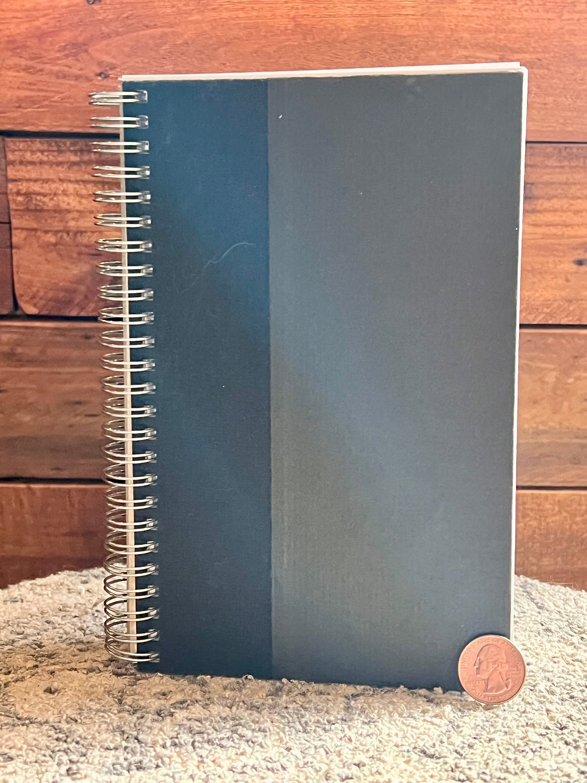 Plain black, silver binding, no nonsense. Originally discarded before becoming a beautiful notebook, there’s even a “discarded” stamp on the inside back cover to prove it.
